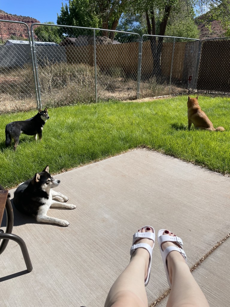 If you haven’t heard of SniffSpot yet, it’s a game-changer for dog owners on the go. This app allows you to rent private yards where your dogs can stretch their legs, play, and use the bathroom. You can filter for certain criteria depending on your dogs needs. For example, we always opt for fully fenced spaces. On long driving days, SniffSpot is a lifesaver for us and our Shibas. Being able to give them a safe space to burn off energy and use the bathroom makes the car rides far more peaceful.